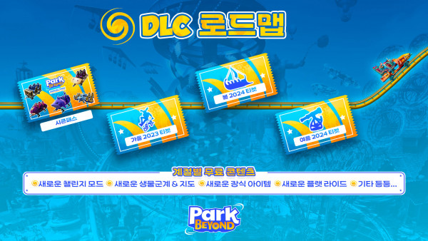 시즌 패스의 일부로 제공되는 유료 DLC와 출시 이후 무료 DLC가 플레이어 여러분을 기다리고 있다. 올 여름부터 찾아올 새로운 테마의 놀이기구, 장식, 엔터테이너 등이 ‘파크 비욘드’(Park Beyond)(한국어판)에 더 많은 즐거움을 제공한다.