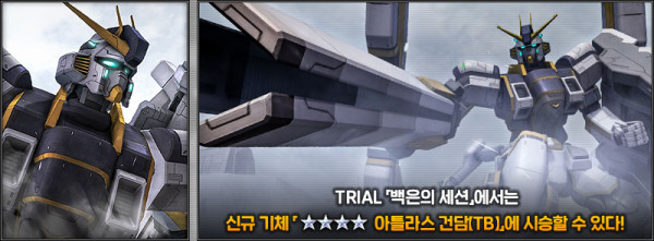 TRIAL ‘백은의 세션‘에서는 신규 기체 ‘아틀라스 건담【TB】’에 시승할 수 있으며, BOSS ‘저주와 복수와...’에서는 샴블로 및 퀸 만사(안네로제 기체)와 벌이는 연전에 도전할 수 있다. 또한 각종 미션을 달성하면 기체와 토큰, DP 등을 획득할 수 있다.
