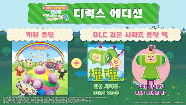 또한 STEAM® 버전 전용인 스페셜 에디션에는 게임 본편과 DLC ‘괴혼 시리즈 음악 팩’에 더해, 의상 아이템 ‘미니 왕자’가 포함되어 있다.