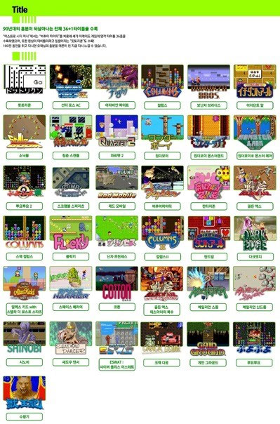버추어 파이터, 원더보이, 수왕기 등 36종의 게임과 사내 테스트용으로 개발된 1종의 게임 포함