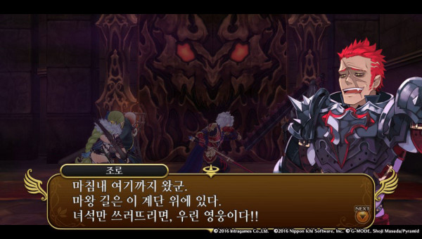 인트라게임즈(대표 배상찬)는 니폰이치 소프트웨어(대표 니이카와 소헤이)와 협력하여 2016년 6월 발매를 목표로 개발 중인 PlayStation®Vita전용 멀티시나리오형 RPG “용사죽다.”의 한국어판 스크린샷을 공개했다.
