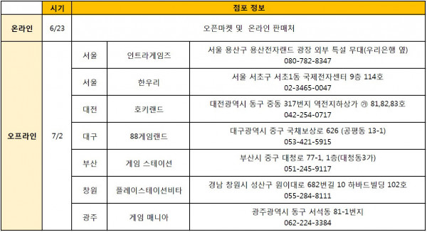 - 6월 23일 온라인 예약 판매 개시, 7월 2일 오프라인 예약 판매 개시