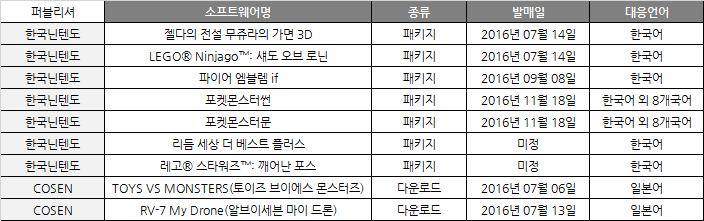 한국닌텐도㈜(www.nintendo.co.kr)는 파이어 엠블렘 if의 발매일과 함께 향후 발매 예정 라인업을 2016년 7월 5일 발표했다.