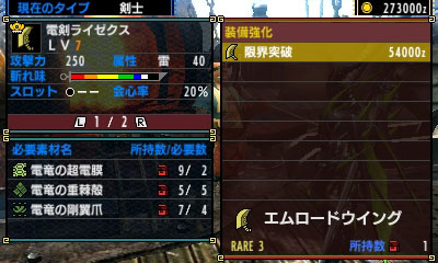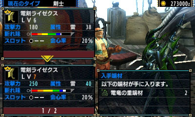 닌텐도x캡콤의 닌텐도 3DS용 [몬스터헌터 더블 크로스(Monster Hunter XX)] 스크린샷입니다.