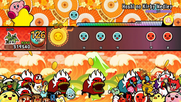 ‘태고의 달인’의 새로운 요소인 연주 캐릭터가 새롭게 등장하였다. 연주 게임을 시작하기 전, 연주 캐릭터를 선택할 수 있으며, 각 캐릭터가 가진 다양한 연주 스킬을 이용하여 플레이어는 고득점을 노릴 수 있다. 또한 ‘Splatoon 2’의 ‘오징어’가 게스트 참가하여 ‘멋징 플레이’를 서포트한다. 인기 캐릭터인 ‘별의 커비’ 역시 연주 캐릭터로 등장하여 음표 인정 타이밍을 보다 늘려주는 ‘풍선 음표 서포트 스킬’을 펼친다.