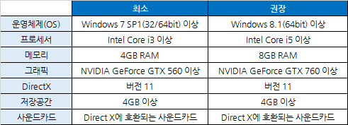 해당 타이틀은 영어, 중국어(번체자), 한국어를 지원하며, 시스템 요구 사항은 아래와 같다.