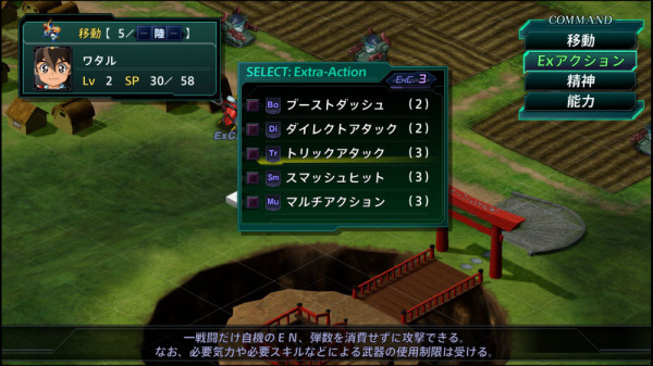 한 번의 전투에서 자기 기체의 EN, 탄 수를 소비하지 않고 공격할 수 있다. 단, 필요 기력이나 필요 스킬 등에 의한 무기 사용 제한은 받는다.