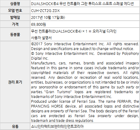 ■ ‘DUALSHOCK®4 무선 컨트롤러 그란 투리스모 스포트 스페셜 에디션’ 제품 개요