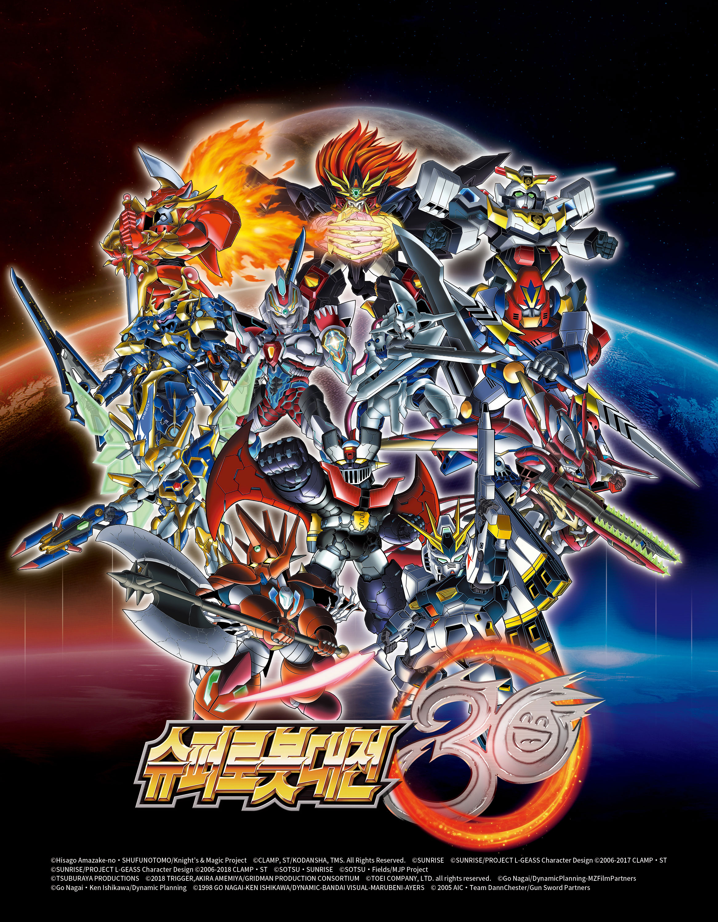 시리즈 30주년을 기념하는 타이틀 '슈퍼로봇대전 30'(한국어판)가 Nintendo Switch™, PlayStation®4, STEAM®에 등장! 슈퍼로봇대전은 다양한 애니메이션에 등장한 로봇들이 한자리에 모여 공통의 적과 싸우는 시뮬레이션 RPG 시리즈로, '마징가 Z : 인피니티', '초전자 로보 컴배틀러 V', '기동전사 Z건담', '코드 기아스 부활의 를르슈' 등의 다양한 애니메이션에 등장한 로봇들이 작품의 장벽을 넘어 모이는 오리지널 스토리가 펼쳐진다.