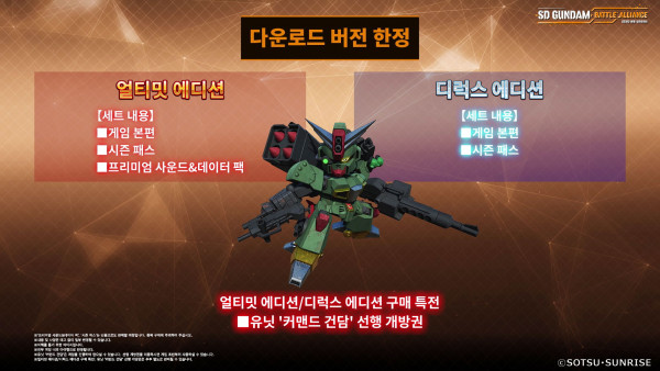 ※유닛 '커맨드 건담' 선행 개방권은 '얼티밋 에디션'과 '디럭스 에디션'의 구매 특전과 동일합니다.
