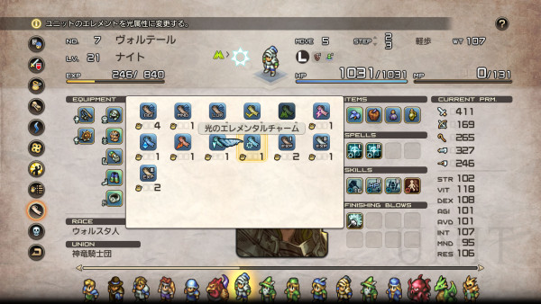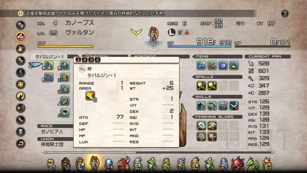『Tactics Ogre: Reborn』에서는 획득한 것을 바로 장비해서 사용할 수 있습니다. 다만 클래스에 따라서는 특성상 장비할 수 있는 무구와 마법이 다릅니다.