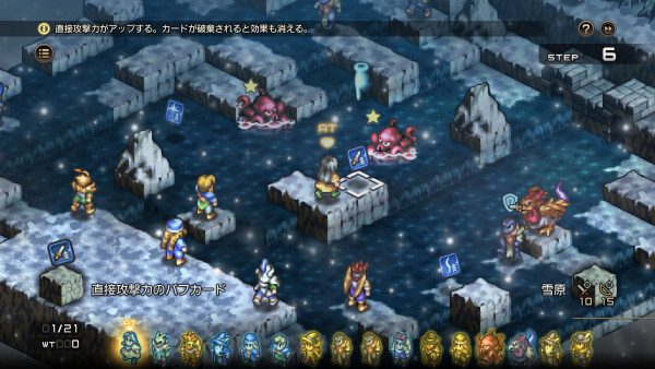 아군・적군 유닛은 이 버프 카드를 서로 가지려고 하므로 배틀을 유리하게 진행하려면 어떻게 움직여야 하는지 궁리하게 되며 이것이 바로 이번 작품만의 묘미입니다.