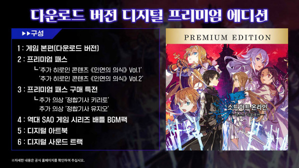 ・ 프리미엄 패스 구매 특전: 추가 의상 ‘정합기사 키리토’, ‘정합기사 유지오’