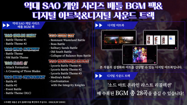 - 역대 SAO 게임 시리즈 배틀 BGM팩, 디지털 아트북, 디지털 사운드 트랙