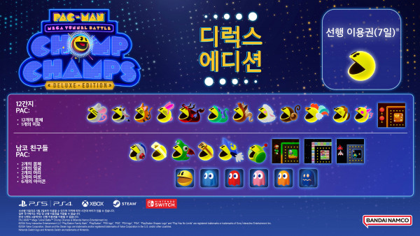 - 권리표기 : PAC-MAN™ Mega Tunnel Battle™ Chomp Champs & ©Bandai Namco Entertainment Inc.