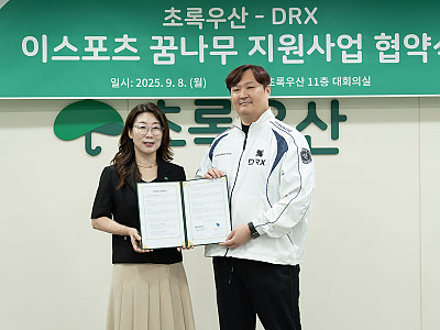 -취약계층 아동 대상 ‘이스포츠 꿈나무 지원사업’ 본격 추진글로벌 프리미어 e스포츠 팀 DRX가 지난 9월 8일, 서울 중구 초록우산 어린이재단 본부에서 취약계층 아동의 e스포츠 인재 발굴 및 건전한 문화 확산을 위한 사회공헌활동 MOU를 체결했다고 밝혔다.이날 협약식에는 DRX 양선일 대표이사와 초록우산 어린이재단 신정원 사회공헌협력본부장이 참석했다.아이…