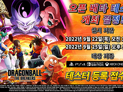 - 공개 베타 테스트, 9월22일(목)~25일(일) 개최- 마인 부우와 농가의 아저씨가 등장하는 최신 PV 공개반다이남코 엔터테인먼트 코리아(대표 제랄드 누난)는 드래곤볼 가정용 게임 최신작 ‘드래곤볼 더 브레이커즈’(한국어판)의 공개 베타 테스트를 9월22일(목)부터 25일(일)까지 실시한다고 발표했다. ■ 공개 베타 테스트 실시 결정! 사전 다운로드 가…