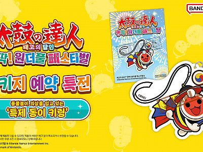 - 패키지 버전의 예약 특전으로 귀여운 ‘특제 동이 키링’ 증정반다이남코 엔터테인먼트 코리아(대표 제랄드 누난)는 2022년 9월 22일에 발매 예정인 '태고의 달인' 최신작 Nintendo Switch™용 '태고의 달인 쿵딱! 원더풀 페스티벌'(한국어판)의 패키지 버전 예약 판매를 9월 1일 (목)부터 실시한다고 발표했다.■ 패키지 버전 예약 특전 패키지…