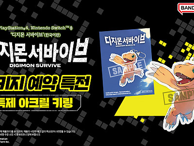 - 패키지 버전의 예약 특전으로 아구몬이 그려진 ‘특제 아크릴 키링’ 증정! - 초회 동봉 특전으로 DLC 한정 추가 캐릭터 '길몬'과 HP 지원 장비를 입수할 수 있는 코드 제공!반다이남코 엔터테인먼트 코리아(대표 제랄드 누난)는 최신 디지몬 게임 '디지몬 서바이브'(한국어판)의 PlayStation®4, Nintendo Switch™용 패키지 버전의 예…