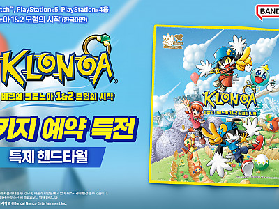- 패키지 버전의 예약 특전으로 귀여운 메인 비주얼이 삽입된 ‘특제 핸드타월’ 증정반다이남코 엔터테인먼트 코리아(대표 제랄드 누난)는 Nintendo Switch™, PlayStation®5, PlayStation®4 버전 ‘바람의 크로노아 1&2 모험의 시작’(한국어판)의 패키지 예약 판매를 오는 6월 23일 (목)부터 실시한다고 발표했다.■ 패키…