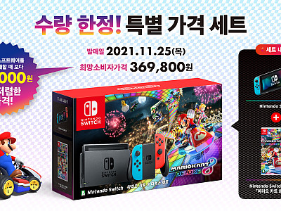 한국닌텐도㈜(http://www.nintendo.co.kr)는 「Nintendo Switch 마리오 카트 8 디럭스 세트」에 관해 다음과 같이 발표했다.「Nintendo Switch 마리오 카트 8 디럭스 세트」가 2021년 11월 25일(목), 희망소비자가격 369,800원에 수량 한정으로 발매된다.「Nintendo Switch 마리오 카트 8 디럭스 세…