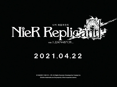 SQUARE ENIX CO., LTD. (이하 SQUARE ENIX, 본사: 도쿄도 신주쿠구, 대표: 마츠다 요스케)는 PlayStation®4/Xbox One*/Steam* 용 액션 RPG 「 NieR Replicant ver.1.22474487139... 」 의 발매일이 2021년 4월 22일 (목요일)로 결정되었음을 발표하였습니다.※Xbox One 버…