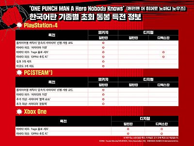 - PC(STEAM®) 버전 2020년 2월 28일 발매!- 새로운 캐릭터 참전 등이 밝혀지는 제4탄 공식 PV 공개반다이남코 엔터테인먼트 코리아(대표 제랄드 누난)는 PlayStation®4, Xbox One(디지털)용 대전 액션 게임 ‘ONE PUNCH MAN A Hero Nobody Knows’(원펀맨 어 히어로 노바디 노우즈) 한국어판을 2020년 …