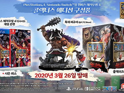 - 새로운 메인 비주얼 및 PV, 콜렉터즈 에디션 정보 공개반다이남코 엔터테인먼트 코리아(대표 제랄드 누난)는 PlayStation®4, Nintendo Switch™, Xbox One(디지털), PC(STEAM®)용 무쌍 액션 게임 ‘원피스 해적무쌍 4’(한국어판)의 발매일을 발표했다.■ ‘원피스 해적무쌍 4’ 공식 웹사이트https://oppw4-20-…