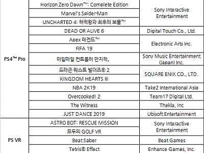 - SIEK, 5월 9일(목)부터 12일(일)까지 4일간 진행되는 2019 PlayX4 참가 - 발매 예정작인 ‘KINGDOM HEARTS III(킹덤 하츠 III)’ 한국어 자막 버전을 비롯한 다양한 PlayStation®4 및 PlayStation®VR 타이틀 총 18종 시연 기회 제공- PlayStation™Store 및 PlayStation®Plus…