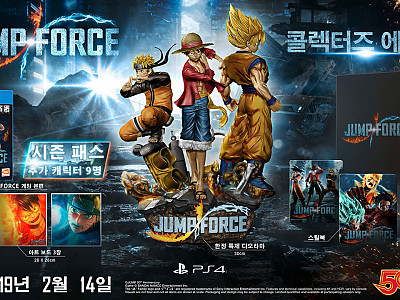 - ‘JUMP FORCE (점프 포스)’ 한국어판 PlayStation®4, Xbox One(디지털)용 2월 14일, PC(Steam®) 2월 15일 발매 - 호화 구성의 한정판 콜렉터즈 에디션 및 예약 구매 실물 특전 공개반다이남코 엔터테인먼트 코리아(대표 제랄드 누난)는 2월 14일 발매 예정인 ‘JUMP FORCE(점프 포스)’(한국어판) PlaySt…