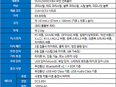 소니인터랙티브엔터테인먼트코리아(이하 SIEK, 대표: 안도 테츠야)는 DUALSHOCK®4 무선 컨트롤러(CUH-ZCT2 시리즈)의 신규 색상인 ‘크리스털’, ‘레드 크리스털’, ‘블루 크리스털’, ‘스틸 블랙’, ‘미드나잇 블루’의 5종을 2017년 10월 11일(수) 각각 69,800원에 판매한다.SIEK는 앞으로도 다양한 하드웨어 라인업 제공과 지속적…