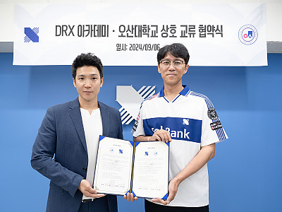 글로벌 톱 클래스 e스포츠∙게이밍 그룹 DRX(각자대표 박정무, 양선일)는 오산대학교(총장 허남윤)와 e스포츠 인재 양성을 위한 업무협약(MOU)을 체결했다고 9일 밝혔다. 지난 6일 서울 마포구 DRX 사옥에서 진행된 협약식에서 DRX와 오산대학교는 상호간 교류를 통해 e스포츠 인재 양성과 교육 발전, 공동 연구 및 인적 교류 등 내용에 합의했다. 이번 …