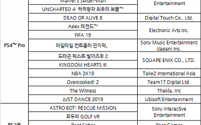 - SIEK, 5월 9일(목)부터 12일(일)까지 4일간 진행되는 2019 PlayX4 참가 - 발매 예정작인 ‘KINGDOM HEARTS III(킹덤 하츠 III)’ 한국어 자막 버전을 비롯한 다양한 PlayStation®4 및 PlayStation®VR 타이틀 총 18종 시연 기회 제공- PlayStation™Store 및 PlayStation®Plus…