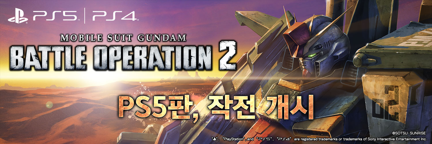 '기동전사 건담 배틀 오퍼레이션 2'는 온라인 전용 팀 배틀 액션 게임으로, 햅틱 피드백 및 적응형 트리거 등 PS5™ 특유의 기능을 탑재해 PS5™ 버전으로 출시되었다. 기본 플레이는 무료로 제공되며, 최대 6vs6 온라인 배틀, MS 커스터마이즈를 비롯해 다양한 전투와 미션 등을 즐길 수 있다.