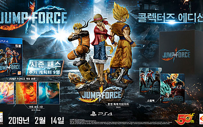 - ‘JUMP FORCE (점프 포스)’ 한국어판 PlayStation®4, Xbox One(디지털)용 2월 14일, PC(Steam®) 2월 15일 발매 - 호화 구성의 한정판 콜렉터즈 에디션 및 예약 구매 실물 특전 공개반다이남코 엔터테인먼트 코리아(대표 제랄드 누난)는 2월 14일 발매 예정인 ‘JUMP FORCE(점프 포스)’(한국어판) PlaySt…