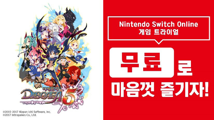 인트라게임즈(대표 배상찬)는 닌텐도 주식회사(후루카와 슌타로, 대표이사)와 협력하여 니폰이치 소프트웨어(니이카와 소헤이, 대표)의 Nintendo Switch™용 시뮬레이션 RPG “마계전기 디스가이아 5”를 Nintendo Switch Online 가입자를 대상으로 9월 21일부터 9월 27일까지 일주일간 무료로 이용할 수 있는 게임 트라이얼 이벤트를 개최한다고 밝혔다.