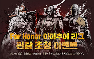 - 현장에서 경기 관람하고, PS4™ PRO도 받자- 온라인 시청자에게도 PS VR 등의 푸짐한 경품이!인트라게임즈(대표 배상찬)는 유비소프트(지사장 홍수정)와 협력하여 액션 게임 “For Honor™(이하 ‘포 아너’)”의 아마추어 리그 현장 방청객 모집 이벤트를 실시한다고 밝혔다. 유비소프트는 3월초 시작되어 성황리에 막을 내린 ‘포 아너 친선 토너먼트…