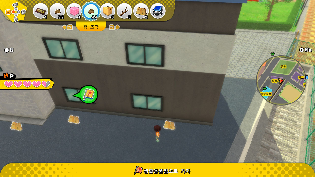 모은 잡동사니로 만든 파츠를 자유롭게 조합하여, 나만의 비밀 기지를 만들자. 골판지나 콘크리트 등으로 만든 건축 재료를 사용해서, 높이도 넓이도 자유자재로 비밀 기지를 만들 수 있다. 에스컬레이터나 엘리베이터로 쉽게 이동할 수 있게 연구하거나, 해먹과 소파 등 다양한 인테리어로 취향에 맞게 꾸밀 수 있다.
