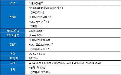 소니인터랙티브엔터테인먼트코리아(이하 SIEK, 대표: 안도 테츠야)는 오리지널 PlayStation®의 모습을 그대로 재현하고 20개의 오리지널 게임을 탑재한 소형 콘솔 게임기 'PlayStation®Classic'을 2018년 12월 3일(월) 118,000원*1에 한정 수량으로 발매한다.1994년 12월 3일 일본에서 처음 선보인 오리지널 PlaySta…