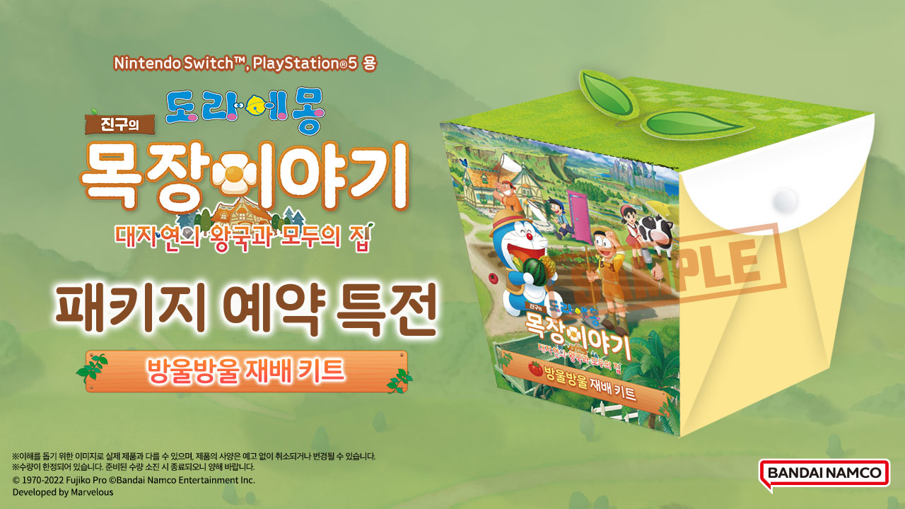 반다이남코 엔터테인먼트 코리아(대표 제랄드 누난)는 2022년 11월 2일 발매 예정인 Nintendo Switch™, PlayStation®5, Steam®용 ‘도라에몽 진구의 목장이야기 대자연의 왕국과 모두의 집’(한국어판)의 패키지 버전 예약 판매를 오는 10월 20일(목) 부터 시작한다고 발표했다.