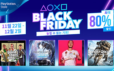- SIEK, PlayStation™Store에서 ‘블랙 프라이데이 세일 – 놓칠 수 없는 기회!’ 프로모션 시작- 2019년 11월 22일(금)부터 12월 2일(월)까지 11일간 진행- EA SPORTS™ FIFA 20, Monster Hunter World: Iceborne™ Master Edition, Grand Theft Auto V, Tom Cla…