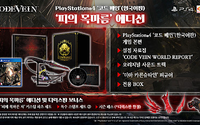 - 한정판 및 초회 동봉 특전 정보 안내- 제5차 공식 한국어판 PV 공개!반다이남코 엔터테인먼트 코리아(대표 제랄드 누난)는 PS4™, Xbox One(디지털), PC(Steam®)용 드라마틱 탐색 액션 RPG ‘코드 베인’(한국어판)의 발매일과 한정판 정보를 발표했다.‘코드 베인’(한국어판)은 독특한 세계관의 포스트 아포칼립스를 배경으로 자신만의 캐릭터…