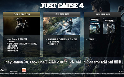 [반다이남코] 저스트코즈4(JUST CAUSE 4) 한글판, 골드 에디션 및 특전 정보 공개