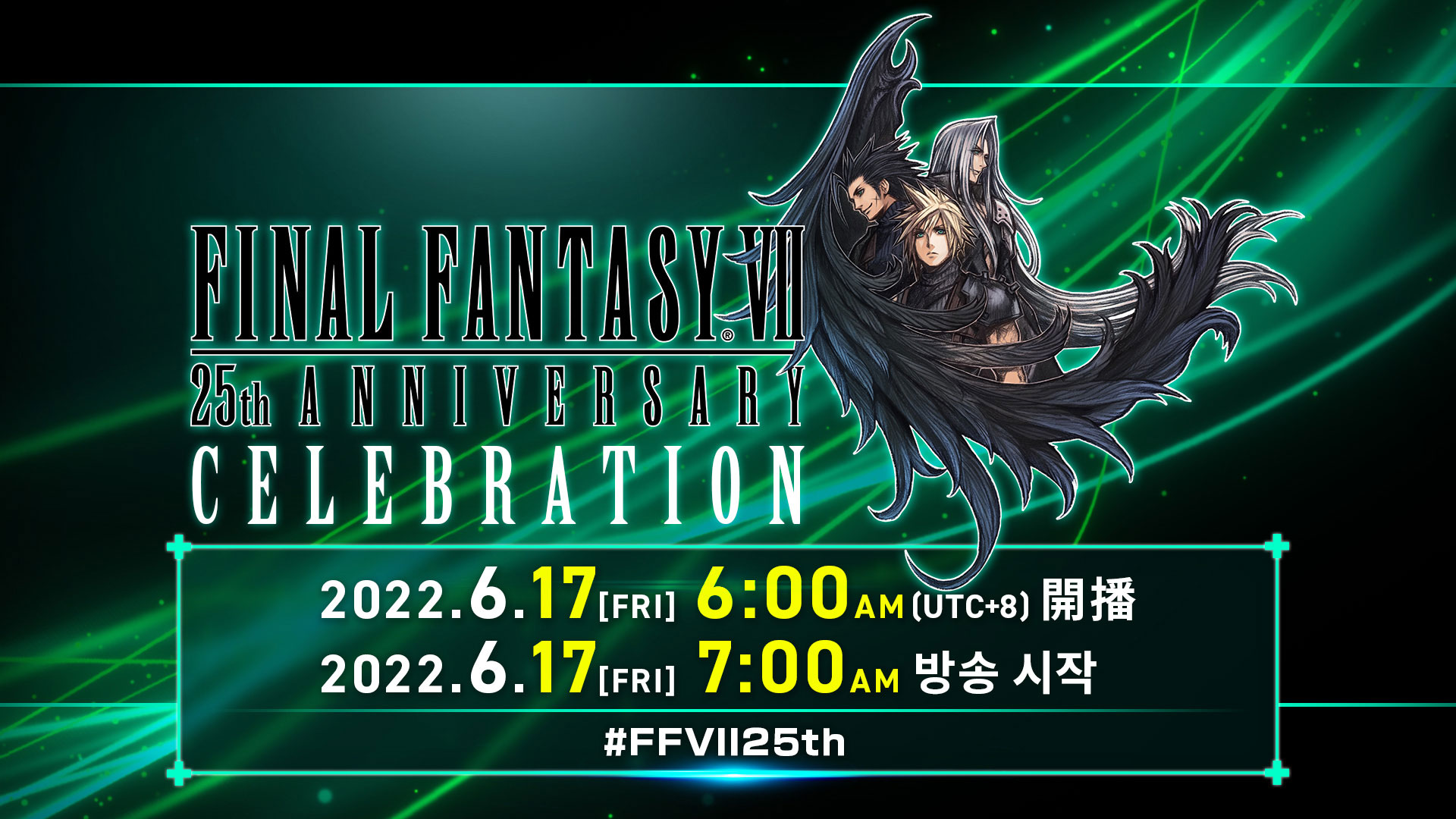 SQUARE ENIX CO., LTD. (이하 SQUARE ENIX, 본사: 도쿄도 신주쿠구, 대표: 마츠다 요스케)는 『FINAL FANTASY VII』의 발매 25주년을 맞이하여 기념 방송 「FINAL FANTASY VII 25th ANNIVERSARY CELEBRATION」을 6월 17일 (금)에 방송하기로 결정하였습니다.