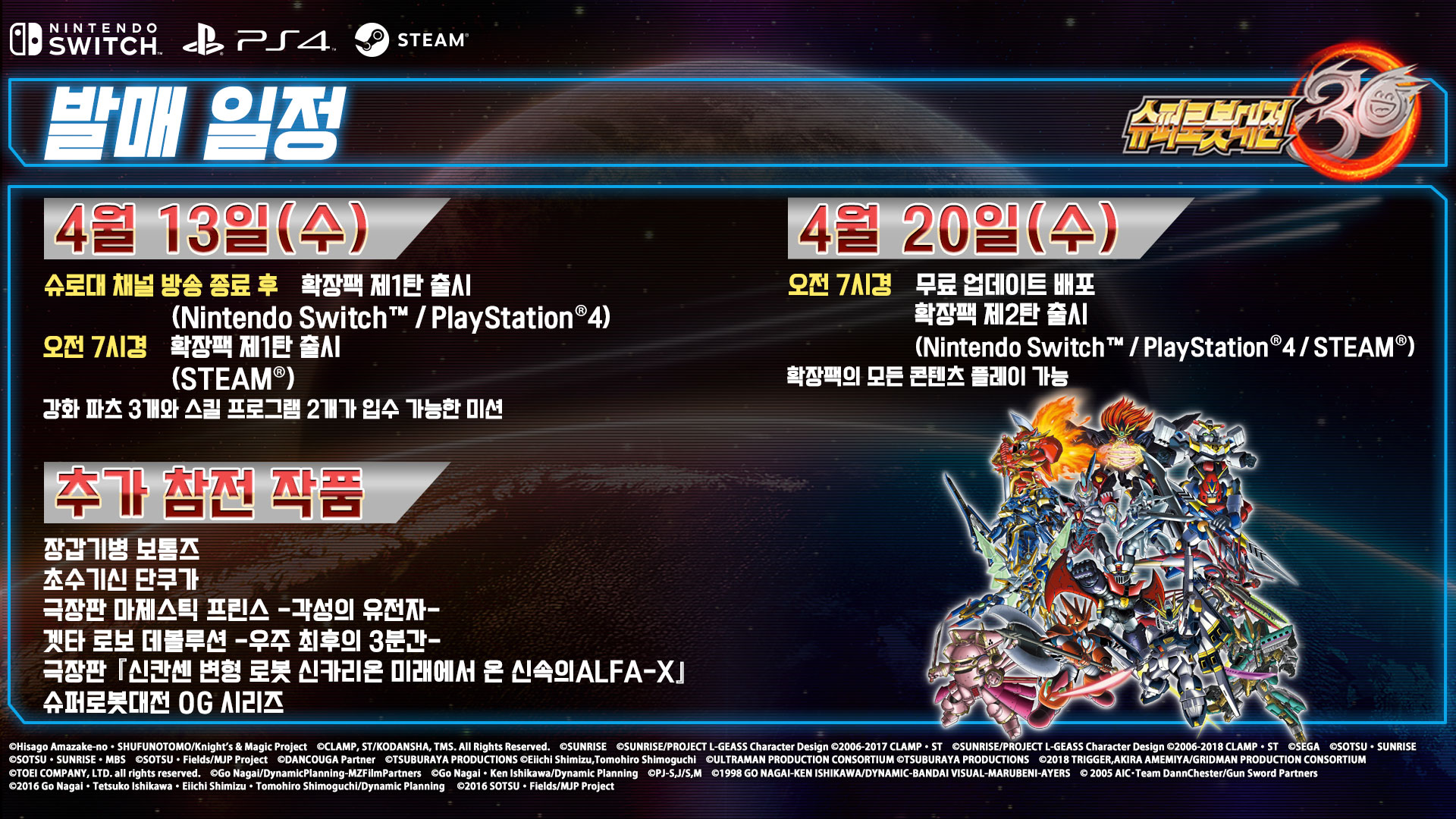 [반다이남코] 슈퍼로봇대전 30 한국어판, 확장팩 순차 출시 개시