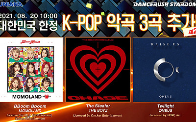 - 모모랜드 ‘BBoom BBoom’, 더 보이즈 ‘The Stealer’, 원어스의 ‘Twilight’- K-POP 3곡 추가 수록(株)유니아나(대표 윤대주)는 코나미 어뮤즈먼트의 댄스형 리듬게임인 ‘댄스러시 스타덤(DANCERUSH STARDOM)’에 국내 한정으로 K-POP 악곡 3곡을 금일(20일) 업데이트한다고 발표했다.지난 6월 첫 K-POP 악…