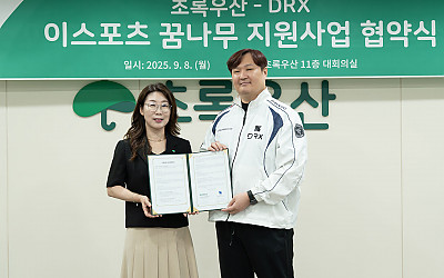 -취약계층 아동 대상 ‘이스포츠 꿈나무 지원사업’ 본격 추진글로벌 프리미어 e스포츠 팀 DRX가 지난 9월 8일, 서울 중구 초록우산 어린이재단 본부에서 취약계층 아동의 e스포츠 인재 발굴 및 건전한 문화 확산을 위한 사회공헌활동 MOU를 체결했다고 밝혔다.이날 협약식에는 DRX 양선일 대표이사와 초록우산 어린이재단 신정원 사회공헌협력본부장이 참석했다.아이…