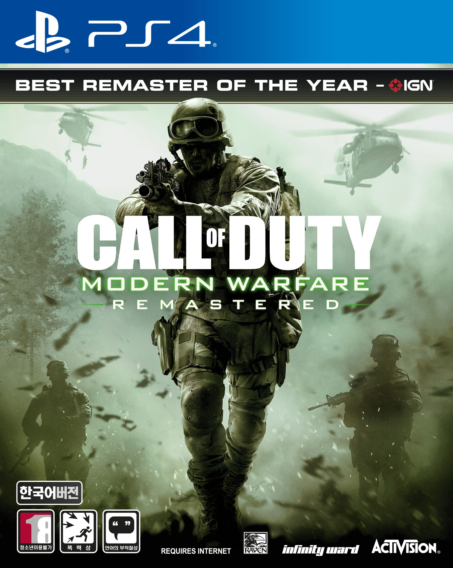 Call of Duty: Modern Warfare Remastered는 청소년 이용불가이며, 44,800원에 발매 된다. 본 패키지는 Modern Warfare Remastered Variety Map Pack을 포함하지 않는다.