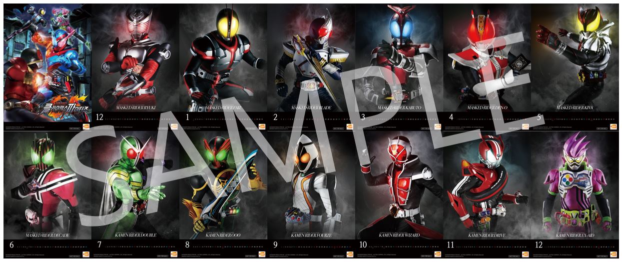 - 한국에서 방영된 모든 가면라이더를 수록한 한국 전용 특제 달력 및 콜렉터즈 카드 증정!
