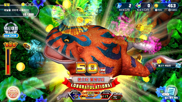 온라인 상대와 낚시 대회를 벌인다. 승리의 별을 모으면 앵글러 레벨이 올라간다.